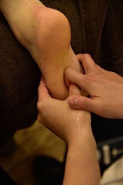 按摩的順序是從兩隻腿部的正面開始做”淋巴”按摩,一路從腳底按到大腿下半段,師傅的力道可以由你做調整~藉由按摩淋巴來疏通腿部的氣結、促進循環,過程中會使用精油~