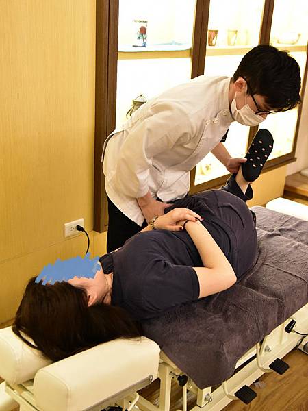接著就開始做調整啦,師傅把我的雙腿凹來凹去的做調整,雖然有一陣一陣啪噠啪噠的骨頭聲,但是我居然都不會感到疼痛~