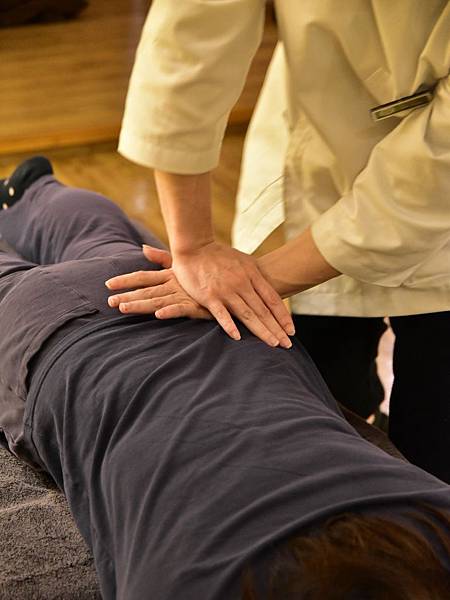 這位戴眼鏡的師傅看起來頗瘦,按起來卻很到位欸~整體根本課程會先做放鬆身體的按摩,等身體不那麼緊繃後,就會開始調整囉。